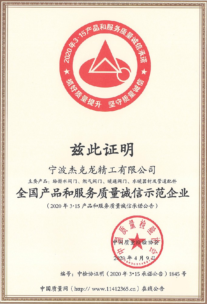 2018年11月8日,杰克龍精工公司正式獲得由浙江制造國際認證聯盟和杭州漢德質量認證服務有限公司聯合簽發的《浙江制造認證證書》,
